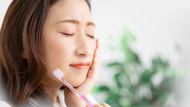 インプラント治療後に、インプラント周囲炎と呼ばれる炎症が起きることがあります。これは天然歯でいう歯周病に似た状態で、歯茎の腫れや出血、痛み、圧迫感などが現れることがあります。プラークや歯石の付着、噛み合わせの不具合が引き金になることが多いため、